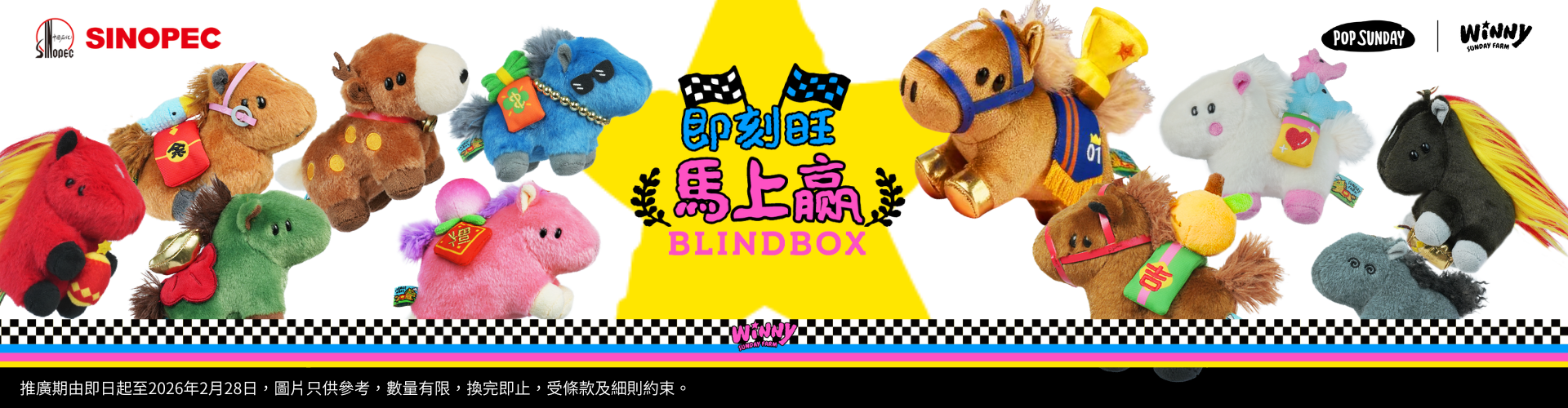 1. 活動推廣期由即日起至2026年2月28日, SINOPEC PLUS APP 會員可於中石化全線油(氣)站以666積分+$68或1888積分+$48或現金價$98換購超級搖錢樹盲盒1個;以666積分+$58或1888積分+$38或現金價$78換購Winny馬上贏1個。