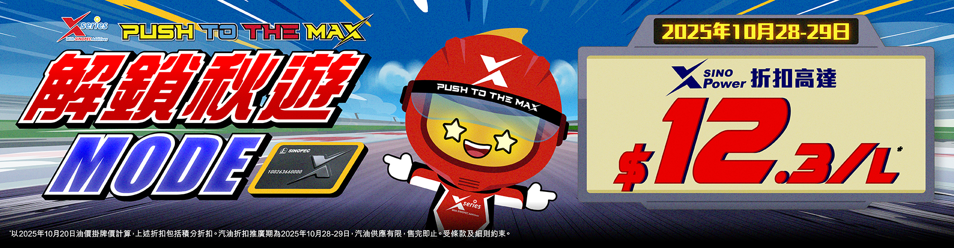 1. 汽油推廣期為2025年10月28-29日, X CARD會員享中石化超級汽油折扣$10.97/升,連同5倍積分相當於折扣高達$12.3/升*,而中石化汽油則享折扣$6.5/升連同3倍積分相當於折扣高達$7.2升&;SINOPEC PLUS APP會員入汽油單次滿25升即可獲贈中石化超級汽油$9.5/升電子折扣券1張,連同5倍積分折扣高達$10.93/升#。