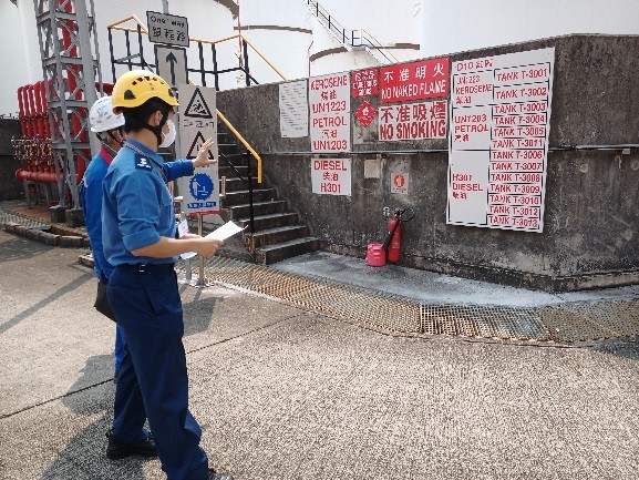 消防處危險品牌照審批人員現場檢查儲油裝置和消防器材
